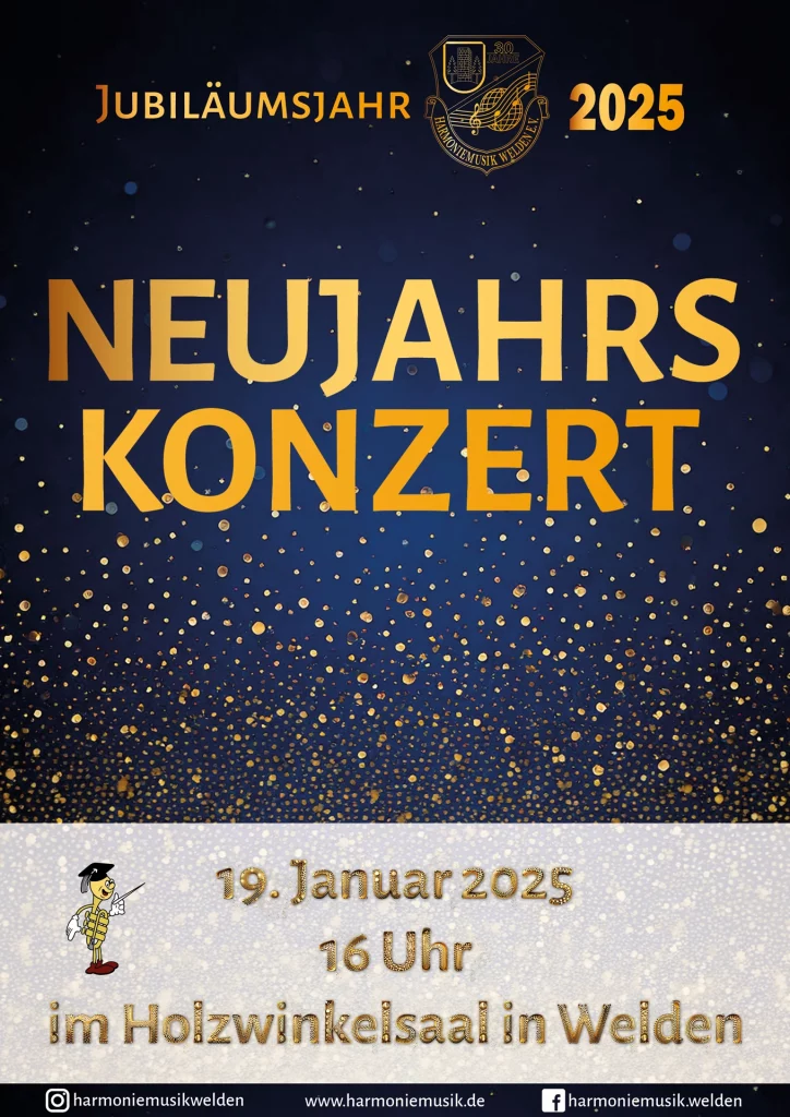 Wir laden euch herzlich ein zu unserem Neujahrskonzert am 19. Januar 2025 um 16 Uhr im Holzwinkelsaal Welden!
